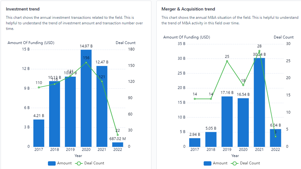 PatSnap Discoveryは技術情報(特許、学術文献)とビジネス情報(会社情報・VC投資情報・M&A情報・ニュースなど)を統合した検索ツールです。様々な切り口でキープレーヤー、Start-Up等の企業分析・技術分析が可能で、R&Dの意思決定やIPランドスケープ(広義)作成に必要な情報を収録しております。